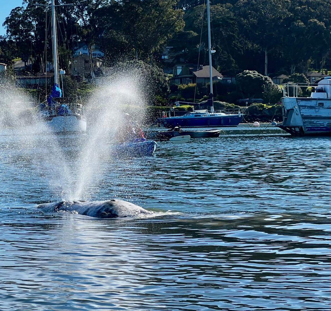 Gray whale spotted swimming in this Central California harbor. Take a look