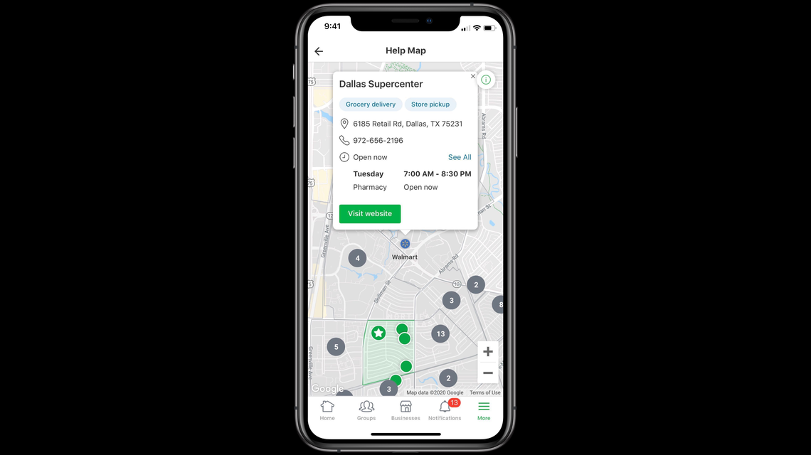 Participating Walmart stores and location hours can be found on Nextdoor’s “Help Map.”