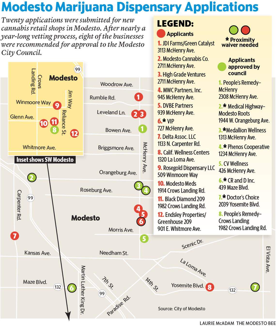 Modesto council approves permits for city’s first eight marijuana dispensaries