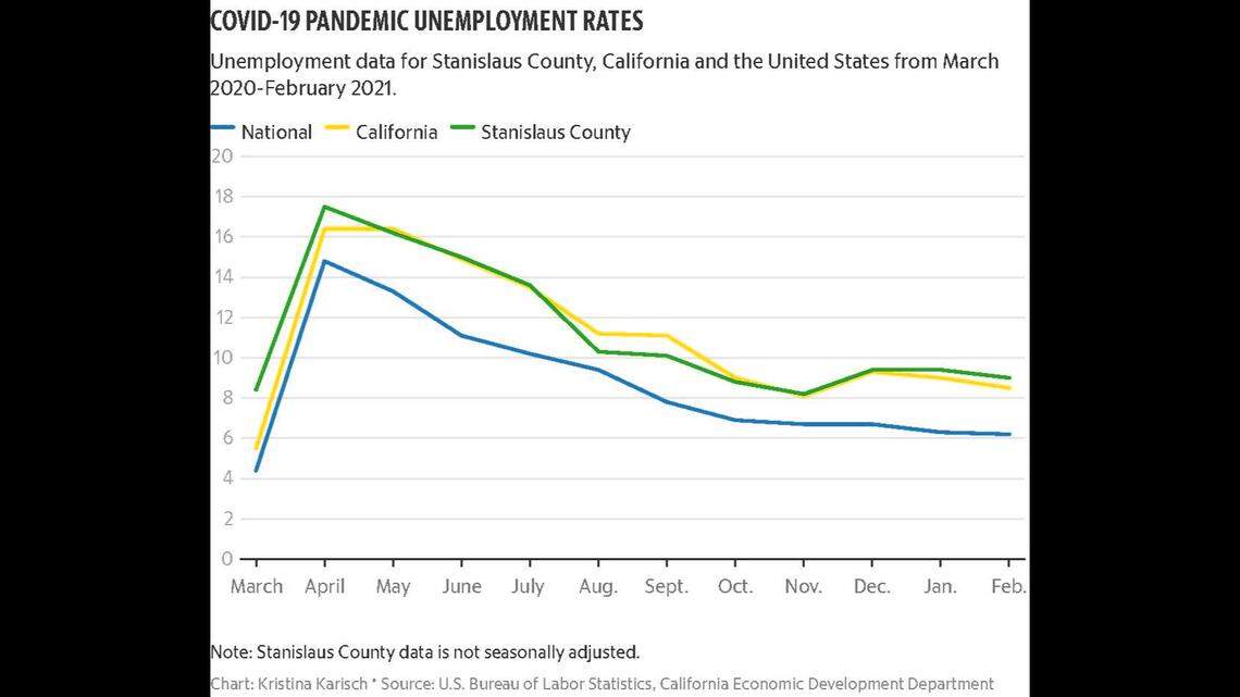 Unemployment in Stanislaus County continues to decline as the country slowly recovers from the COVID-19 pandemic, setting the stage for substantial gains in the second half of 2021.
