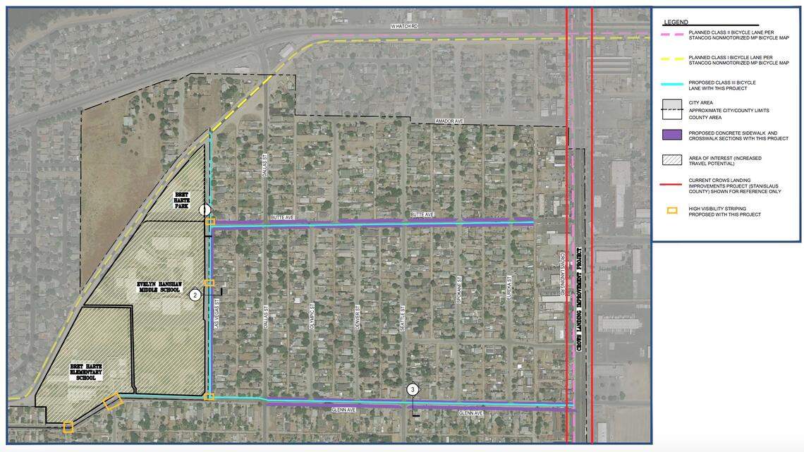 Stanislaus County got a $2.38 million state grant to upgrade Glenn and Butte avenues between Crows Landing Road and Las Vegas Street. The sidewalks will improve access to Bret Harte Elementary School and Hanshaw Middle School, both on Las Vegas.