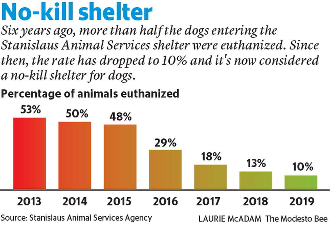 The Stanislaus animal shelter is now considered a ‘no kill’ shelter for dogs, a remarkable achievement for an area chronically challenged by pet overpopulation.